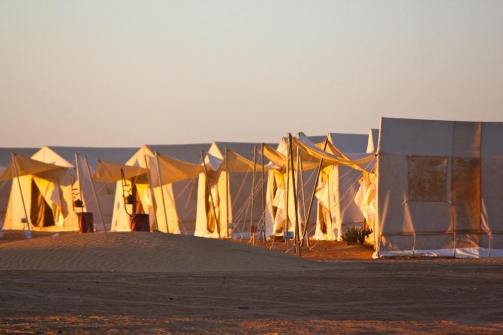 Deluxe Tent. Traditionally set, this more spacious tent offers carpeted flooring and basic equipment with a shared bathroom and toilet. ;