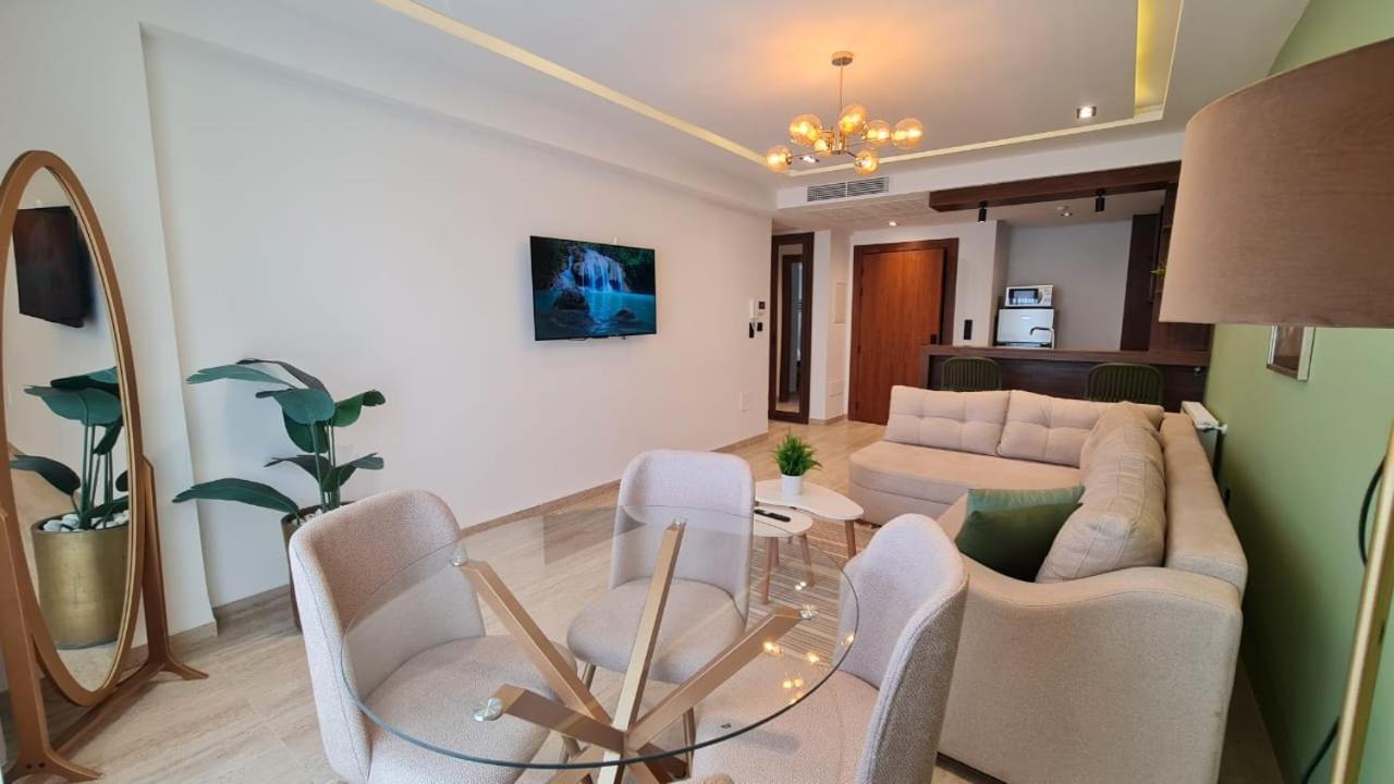 The apartment is composed of 1 bedroom, a fully equipped kitchenette, and 1 bathroom. A flat-screen TV is featured.